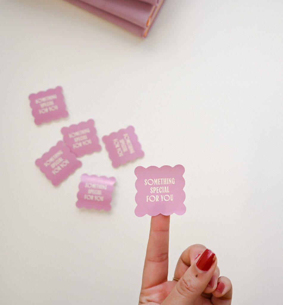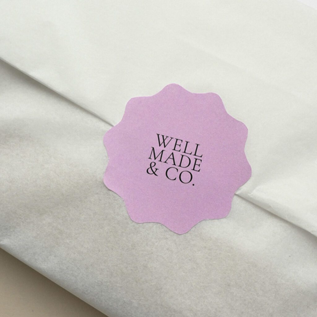 - “Thank you” or “Made with love” packaging stickers
