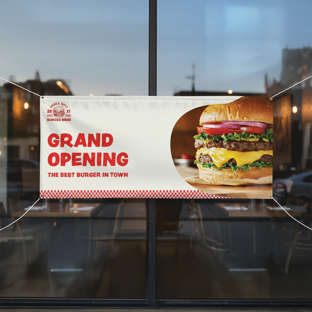 - Reach more people for less: Large-format printed banners grab attention from a distance and turn casual foot traffic into customers at a fraction of the cost of permanent signage.